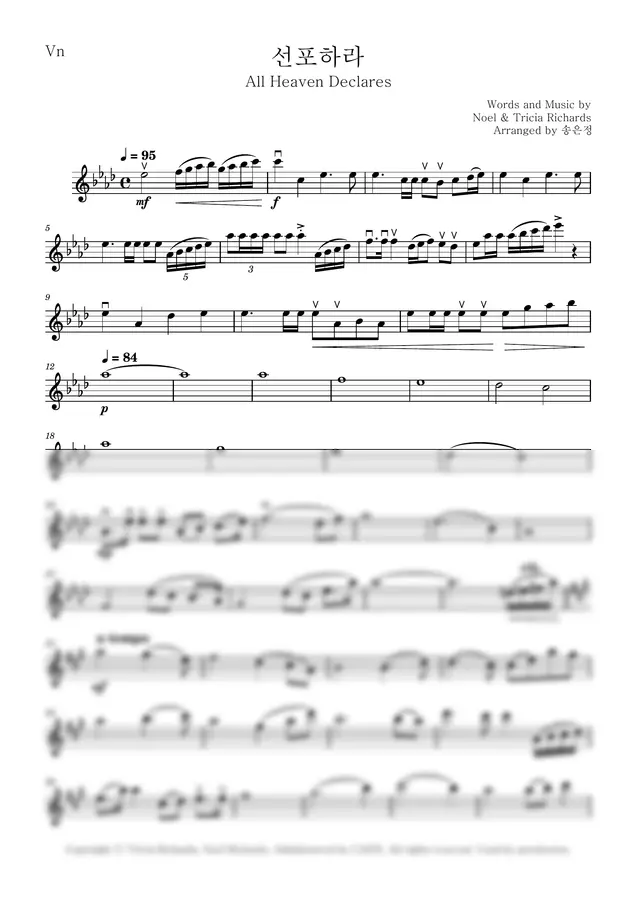 4부합창(SATB)과 함께 연주할 수 있도록 편곡된 바이올린 반주 악보입니다.
