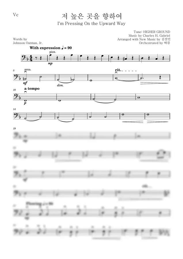 4부합창(SATB)과 함께 연주할 수 있도록 편곡된 첼로 반주 악보입니다.
