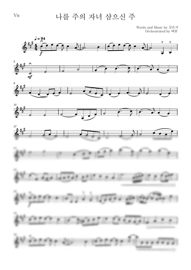 4부합창(SATB)과 함께 연주할 수 있도록 편곡된 바이올린 반주 악보입니다.