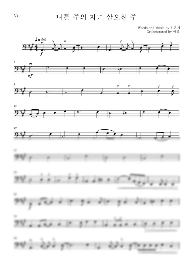 4부합창(SATB)과 함께 연주할 수 있도록 편곡된 첼로 반주 악보입니다.