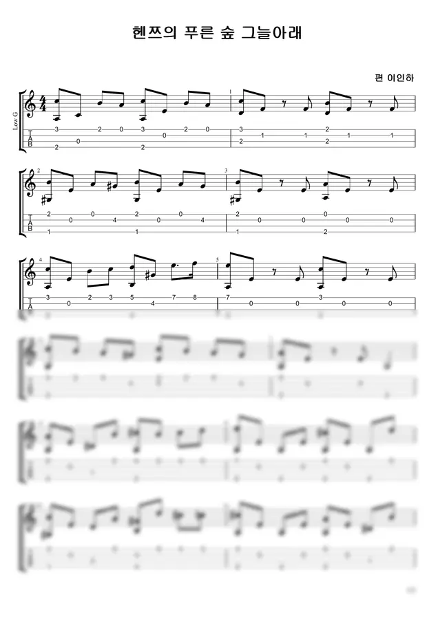 클래식우쿨렐레 콜렉션에 수록되있는 곡이기도 한데 마피아에 등극한 기념으로 가장 대중성있을 수 있는 푸른숲그늘아래를 최저가로 올려봤어요