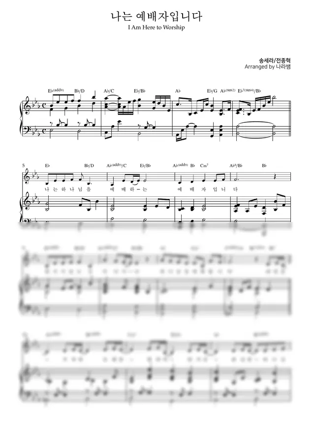 송세라/전종혁 - 나는 예배자입니다 | Eb-F, F-G key 피아노 반주 악보(3단)