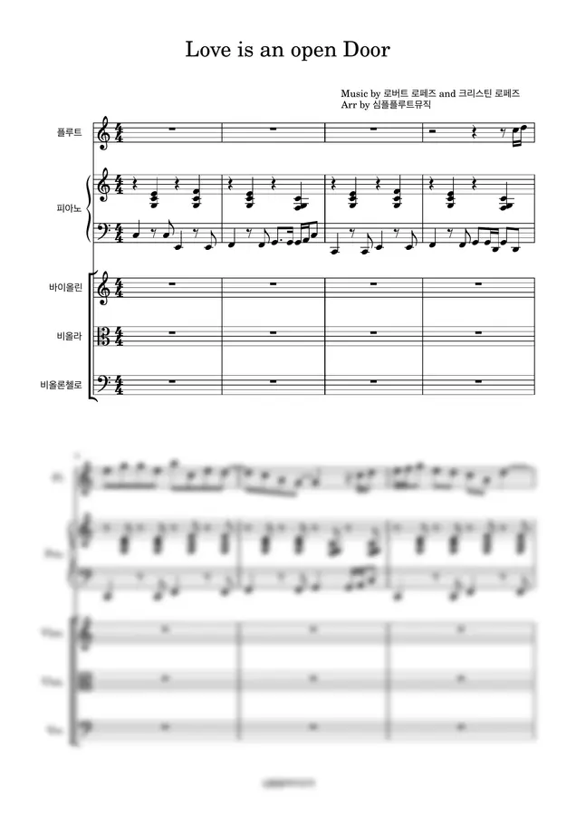 겨울왕국 OST - Love is an open door-[현악앙상블][플루트][피아노][연주회 악보] 1p 미리보기