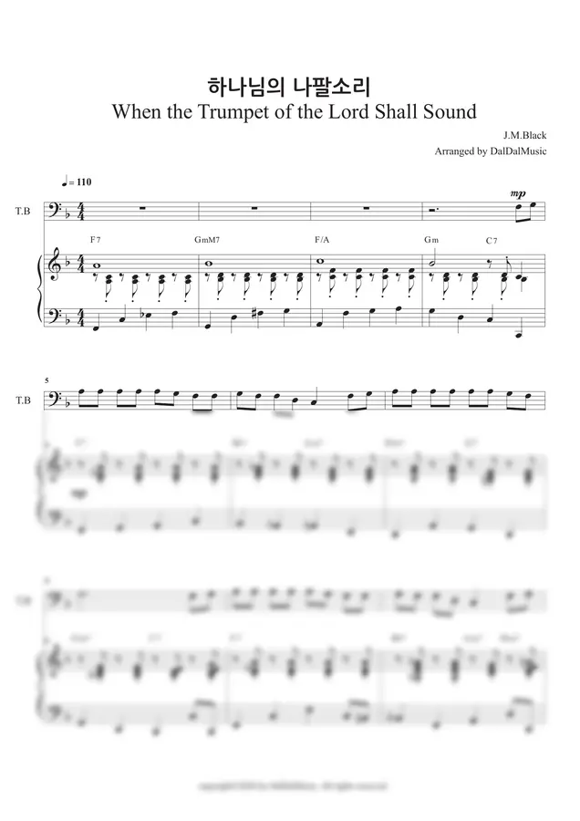 찬송가 180장 <하나님의 나팔소리>를 성가대 4부로 밝고 경쾌하게 편곡하였습니다.