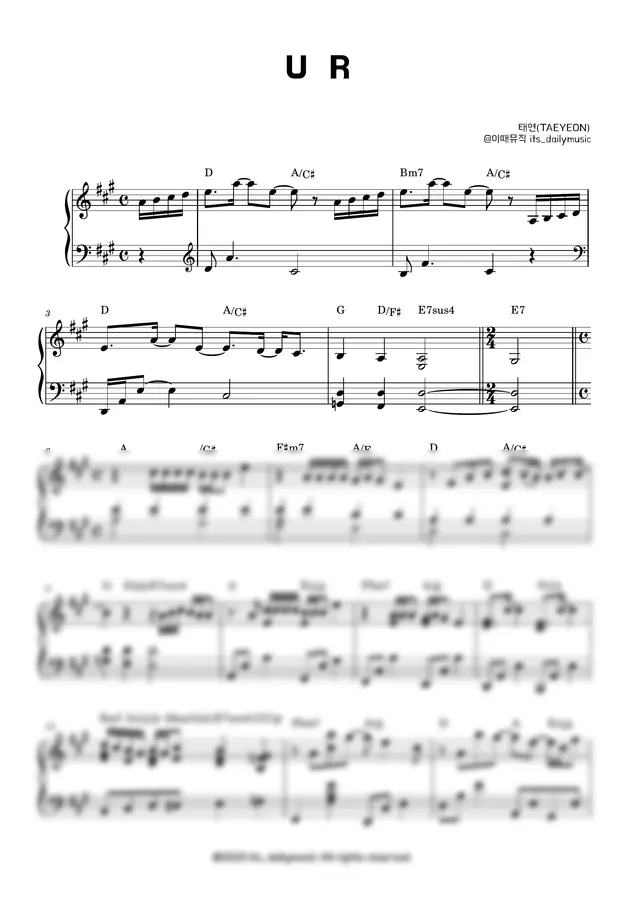 태연(Taeyeon) - U R (원키,중급,코드O) by 이때뮤직_its_dailymusic