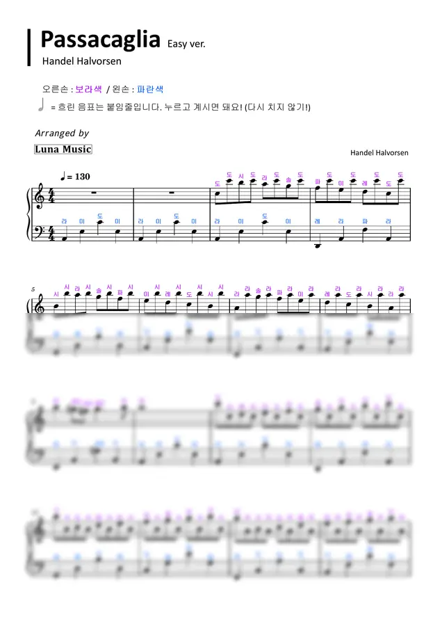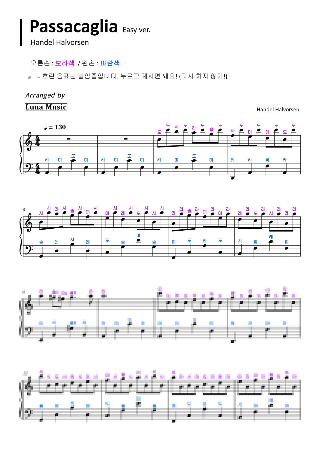 헨델 (Handel) - Passacaglia (파사칼리아) [쉬운 원곡 악보] (계이름 악보) by 루나뮤직 Easy
