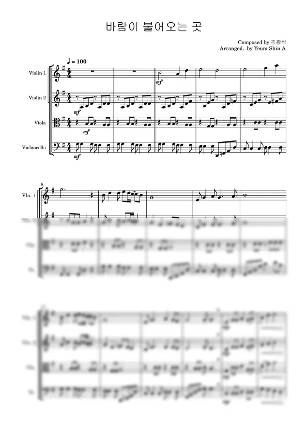 김광석 - 바람이 불어오는 곳 - 현악4중주 by 염신아