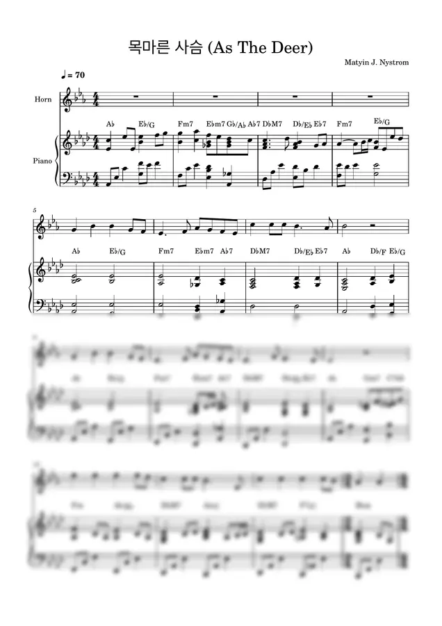 Matyin J.Nystrom - 목마른 사슴 (호른 반주 악보) by Grace Piano