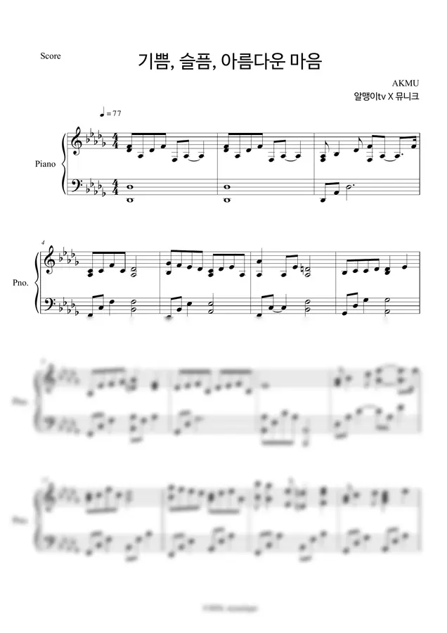 악뮤(AKMU) - 기쁨 슬픔 아름다운 마음 (원곡 느낌) by 알맹이tv 2p 미리보기