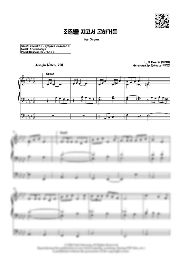 이 곡은 평온함과 감사를 담고 있는 찬송가로, 차분하고 고요한 스톱을 사용해 연주하면 은혜가 가득한 곡이 될 수 있어요.
