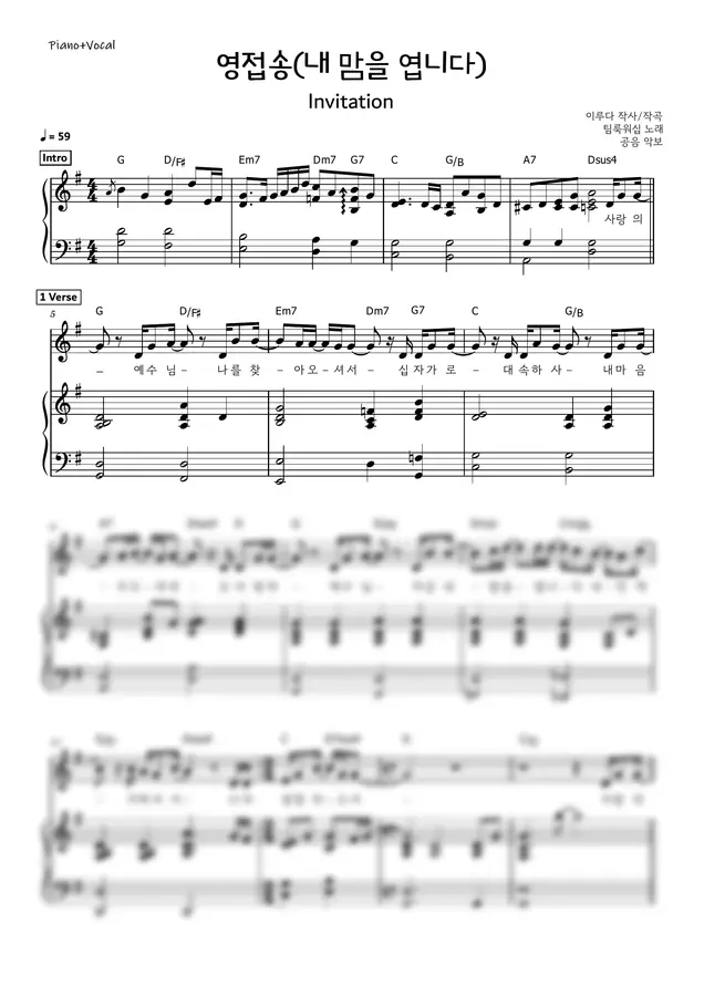 팀룩워십 - 영접송 (원곡 메인건반 E/F/G키)