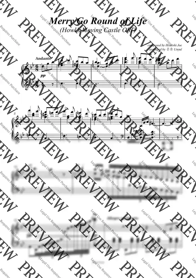 하울의 움직이는 성 OST - 人生のメリ-ゴ-ランド (인생의 회전목마) by 운율 Unyul Piano