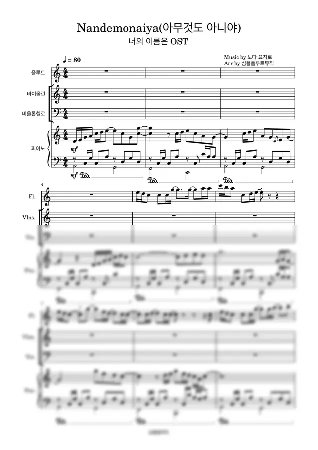너의 이름은 OST - 아무것도 아니야-[현악 앙상블][플루트][피아노]