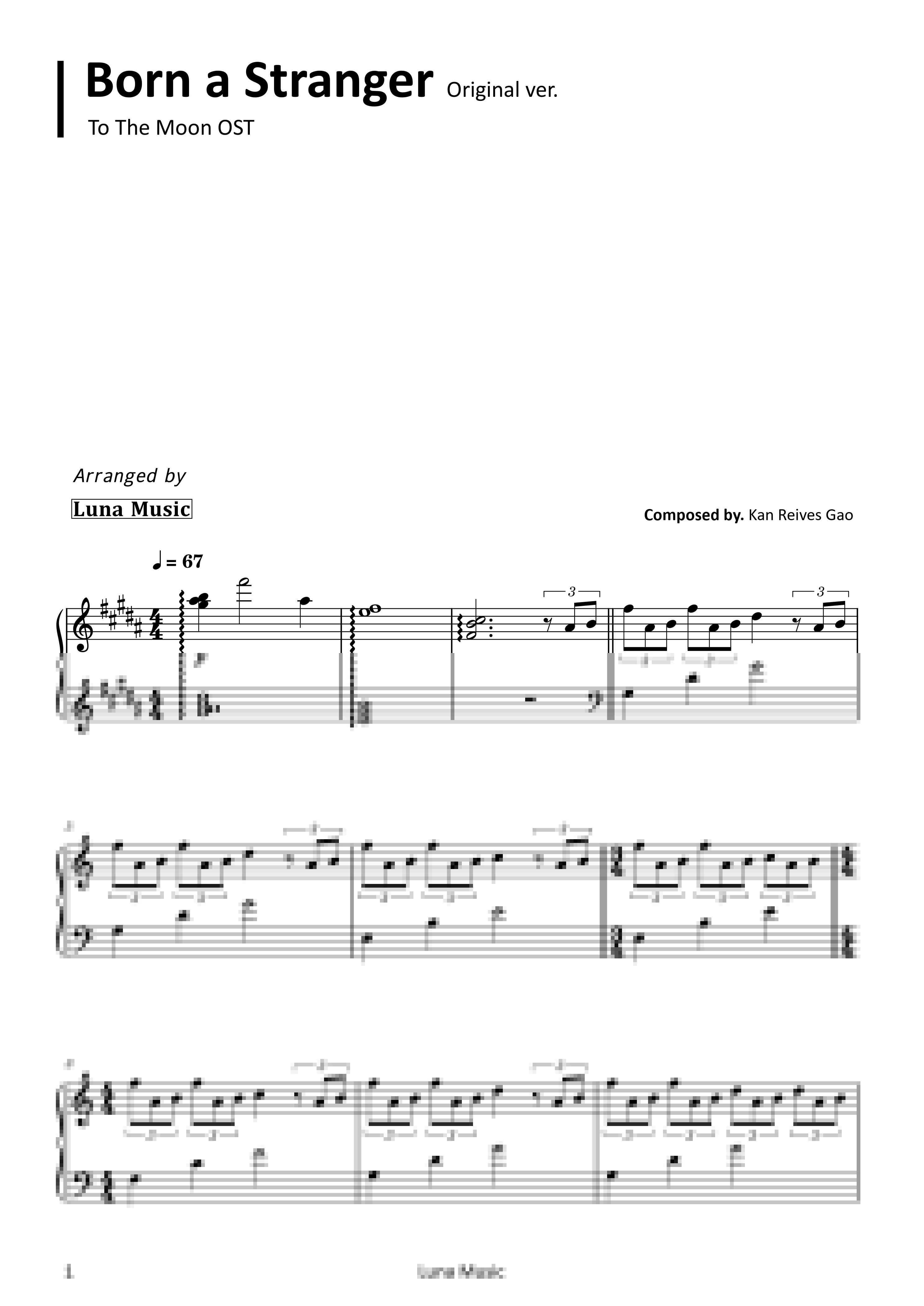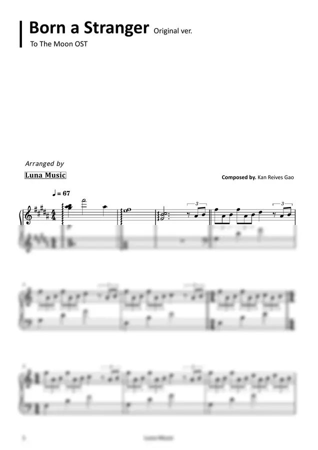 투더문 OST - Born A Stranger [원곡 악보]