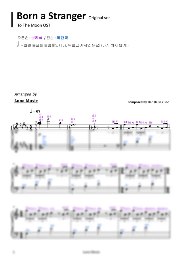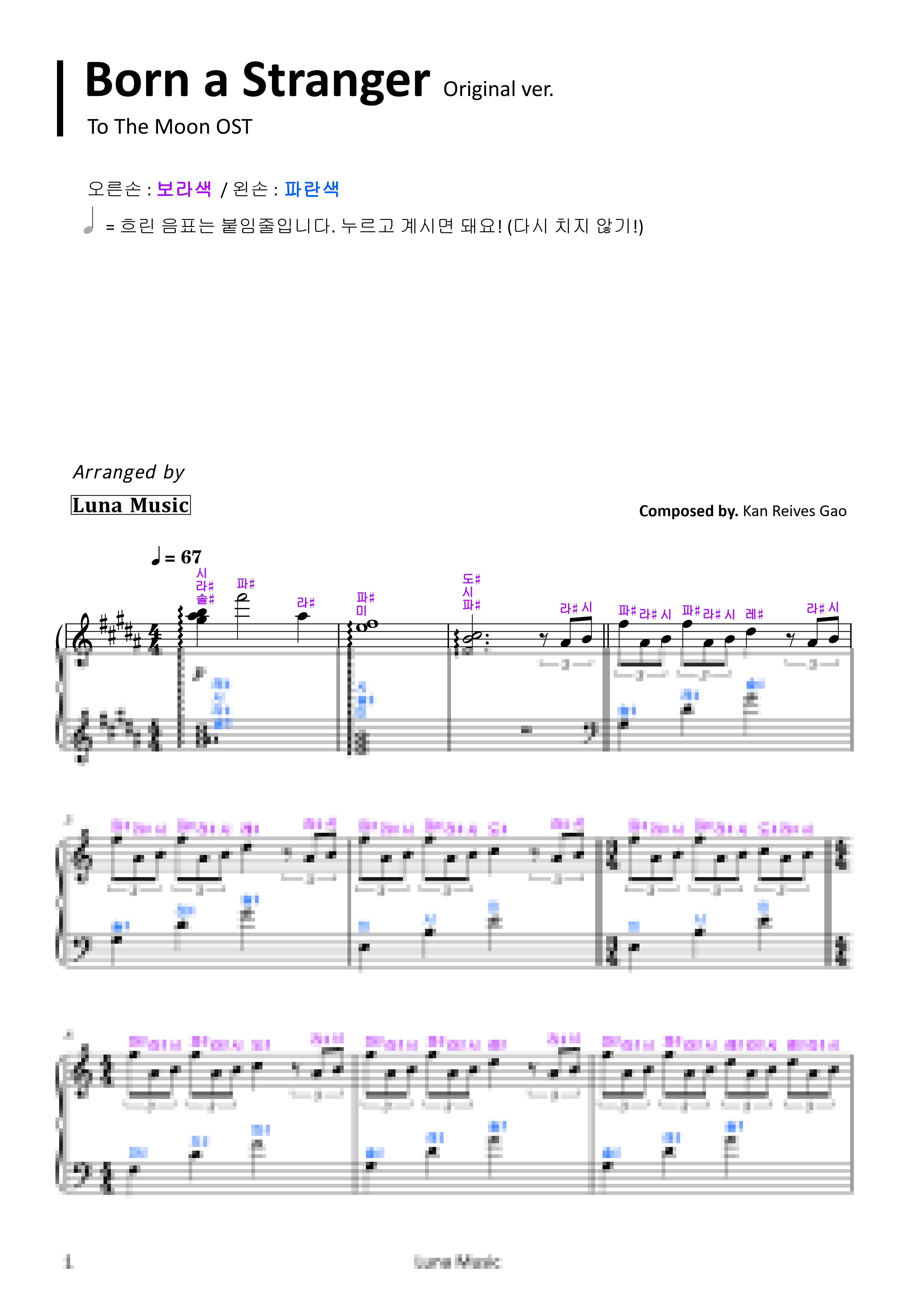 투더문 OST - Born A Stranger [원곡 악보] (계이름 악보)