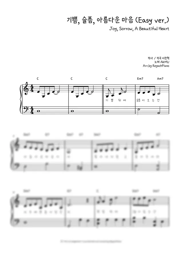 쉬운 버전으로 편곡한 피아노 악보입니다 🎹