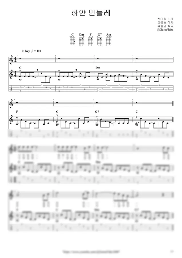 G Key / 3p / 2단(노래+반주) / 5선(Staff) / 타브(TAB) / 가사(Lyrics) / 코드(Chords)