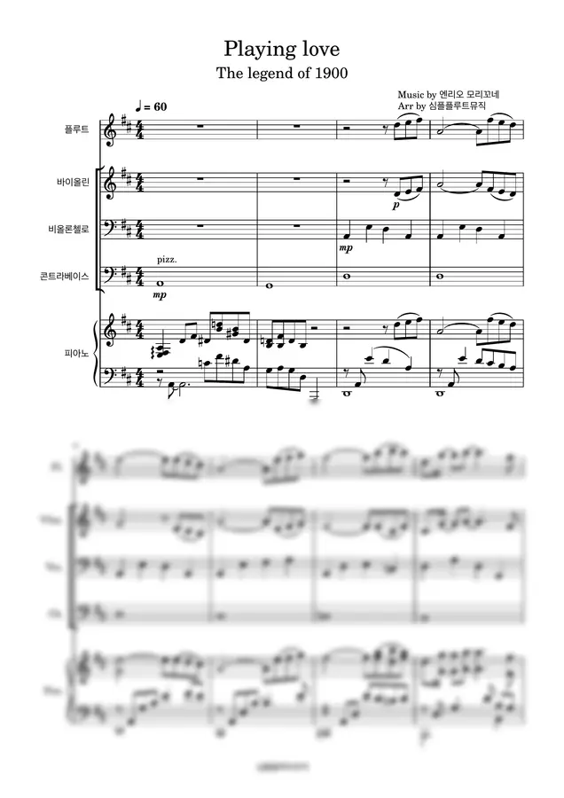 The Legend of 1900 OST - Playing Love-[엔리오 모리꼬네][쉬운 앙상블][연주회 곡]