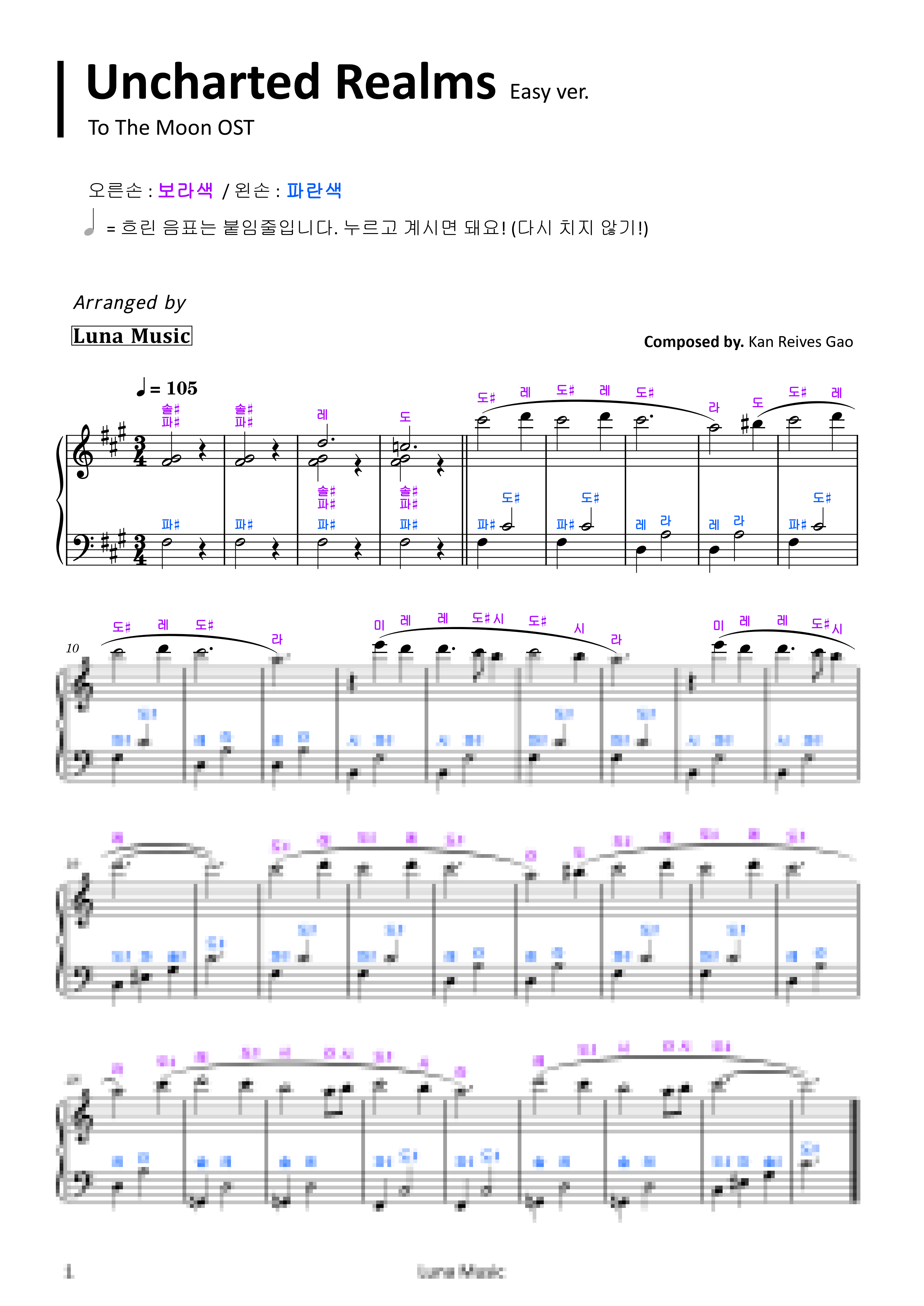 투더문 OST - Uncharted Realms [쉬운 원곡악보] (계이름 악보) by 루나뮤직 Easy