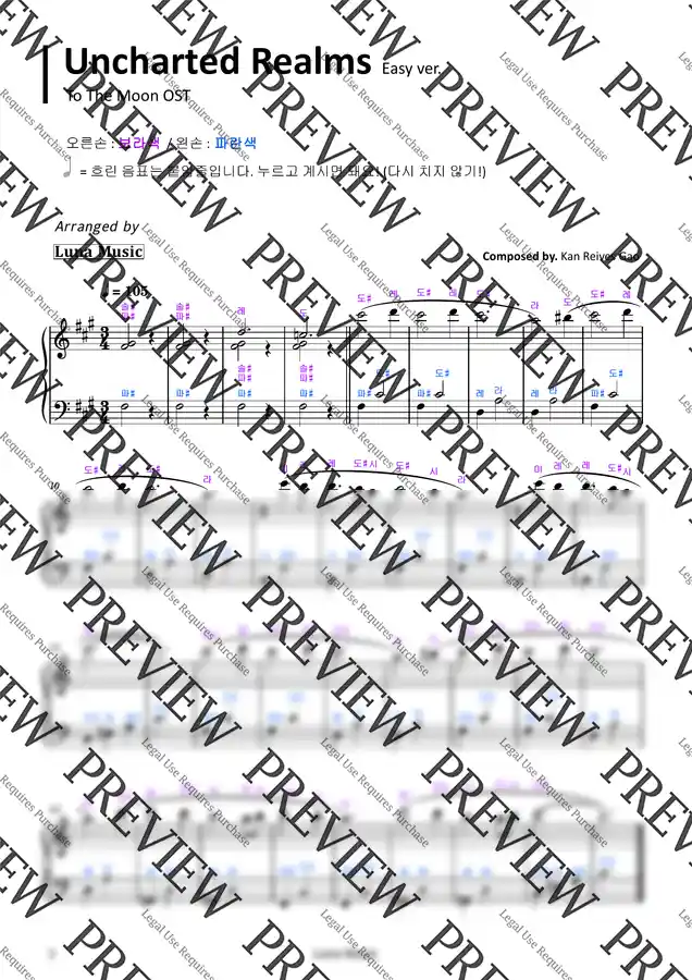 투더문 OST - Uncharted Realms [쉬운 원곡악보] (계이름 악보) by 루나뮤직 Easy 1p 미리보기