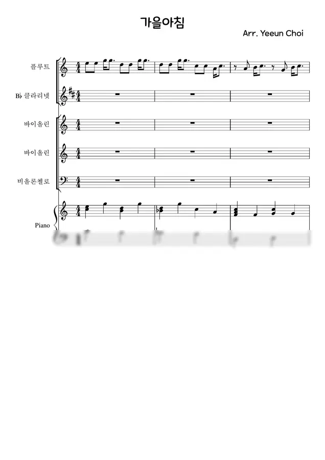 플룻, 클라리넷, 바이올린1, 바이올린2, 첼로, 피아노