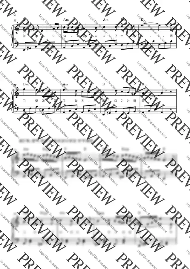 반주악보가 아닌 멜로디와 왼손 반주를 쉽게 칠 수 있도록 편곡하였습니다.