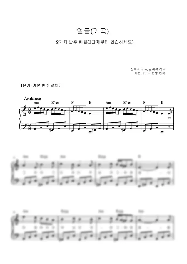 신귀복 - 얼굴(한국가곡) (코드적은반주패턴) by 패턴 피아노 현영
