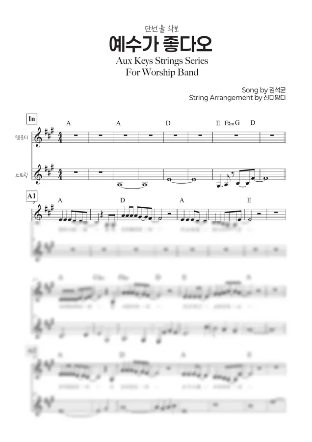 김석균 - 예수가 좋다오 (단선율 스트링 악보) by 신디망디