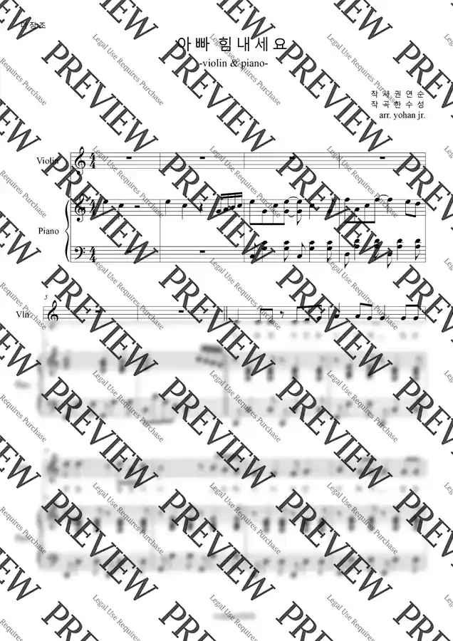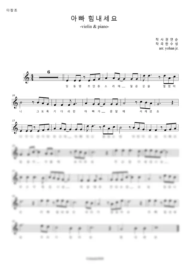 '아빠 힘내세요'를 바이올린으로 연주할 수 있도록 편곡한 악보입니다.