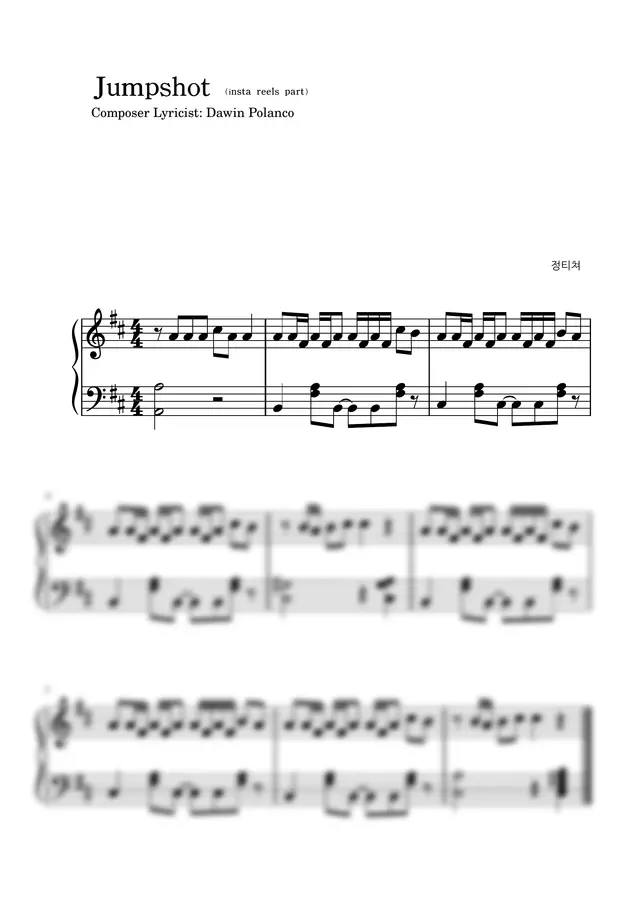 dawin / jumpshot - 인형챌린지BGM (릴스) 쉬운악보(3개) (아 이노래 인형그거) by 정티쳐