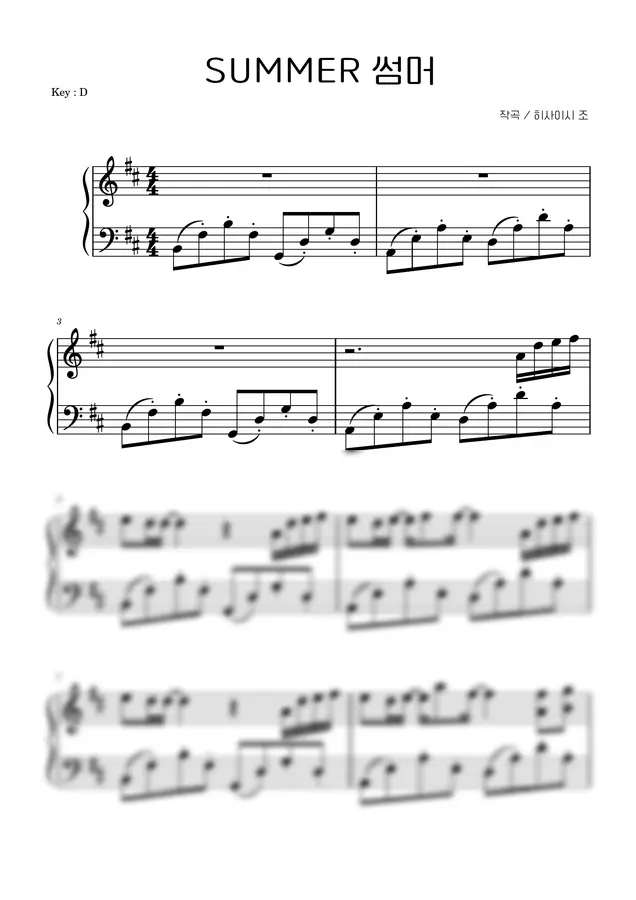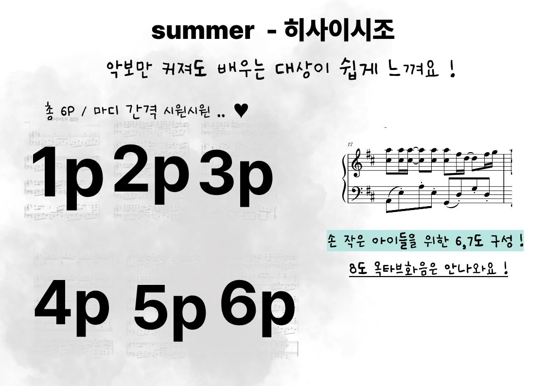 히사이시조 - 썸머 옥타브 안나오는 6,7도 버전 악보 간격 넓음 (연습하기 편함) by 마이피아노