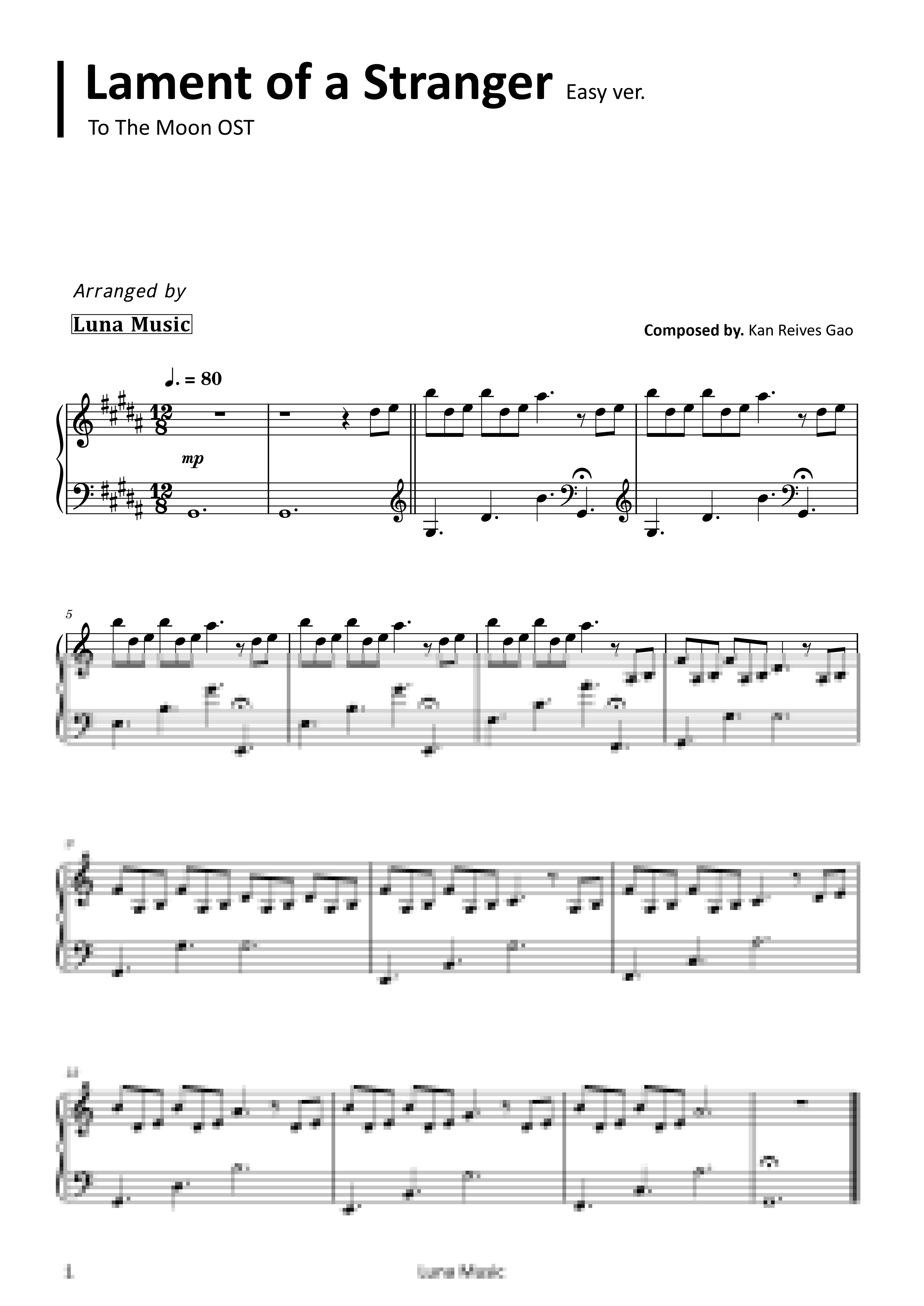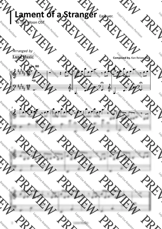 투더문 OST - Lament of a Stranger [쉬운 원곡악보]