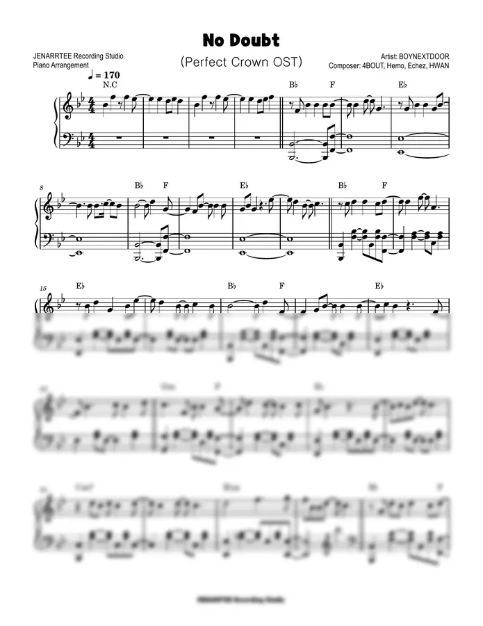 보이넥스트도어 'No Doubt' (21세기 대군부인 OST) 피아노 악보.