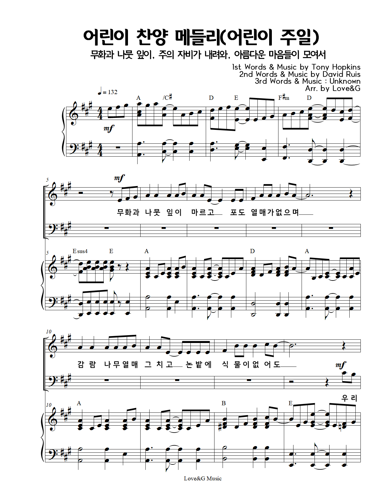 어린이 찬양 메들리(어린이 주일) (4부 합창 SATB) by Love&G