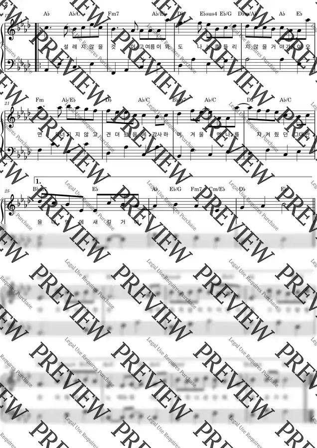 로이킴 - 봄이 와도(Ab-Bb)[초급] (계이름,코드,가사) by 잔잔루브Piano 2p 미리보기