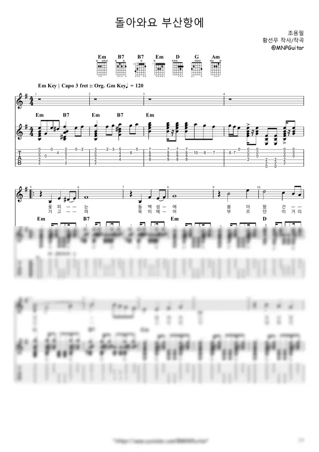 조용필 - 돌아와요 부산항에 (+) by M&P Guitar 1p 미리보기