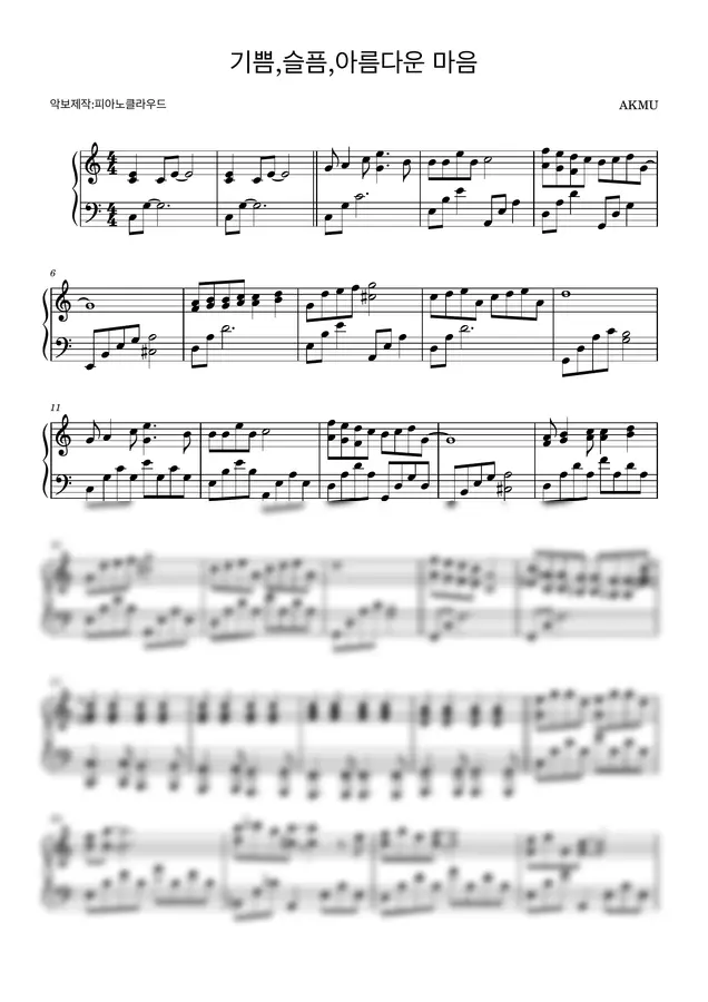 AKMU - 기쁨,슬픔,아름다운 마음 (쉬운 CKey 악보) by 피아노클라우드
