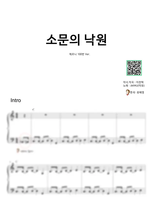 이찬혁(AKMU) - 소문의 낙원 (쉬운악보) by 류혜영피아노