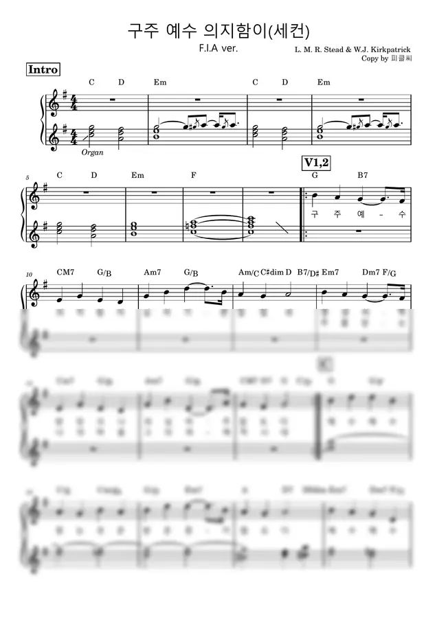 피아워십 - 구주 예수 의지함이 (세컨) G Key (원곡 그대로) by 피클씨