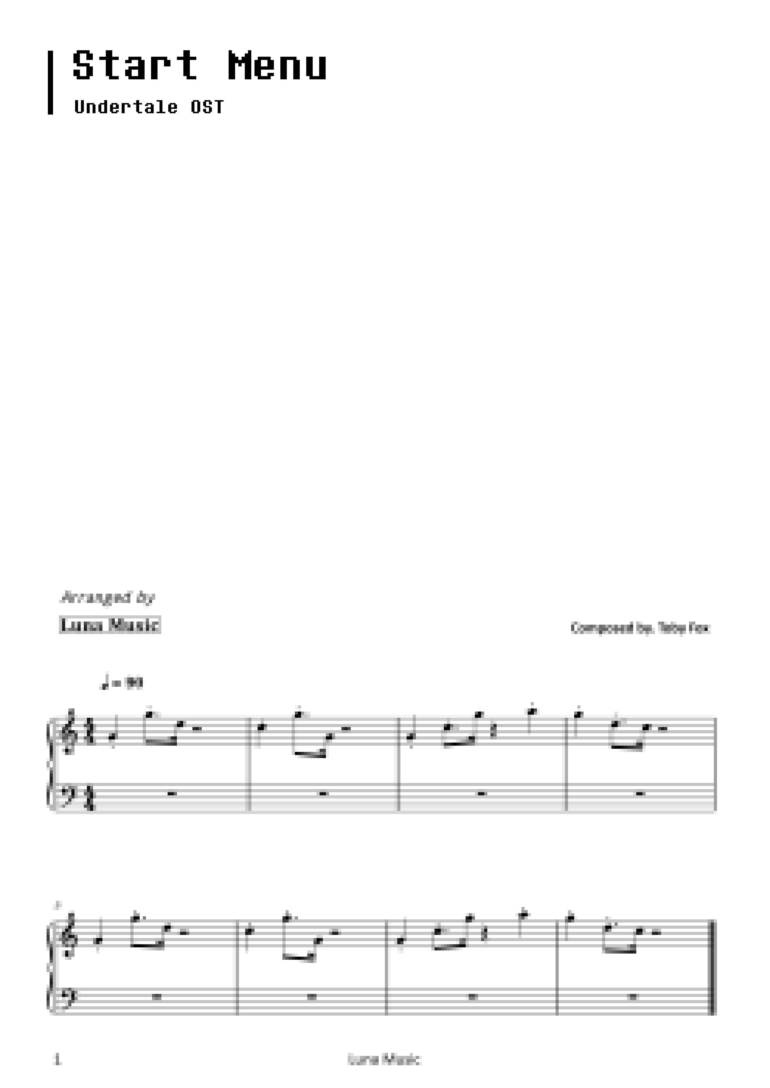 언더테일 OST - Start Menu [원곡악보]
