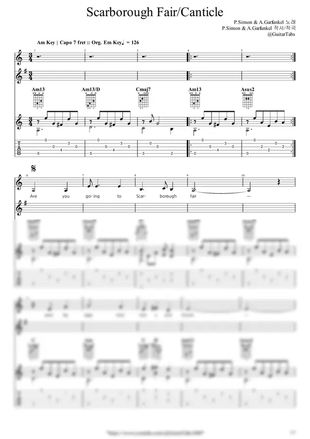 Am Key / 5p / 3단(노래+노래+반주) / 5선(Staff) / 타브(TAB) / 가사(Lyrics) / 코드(Chords)