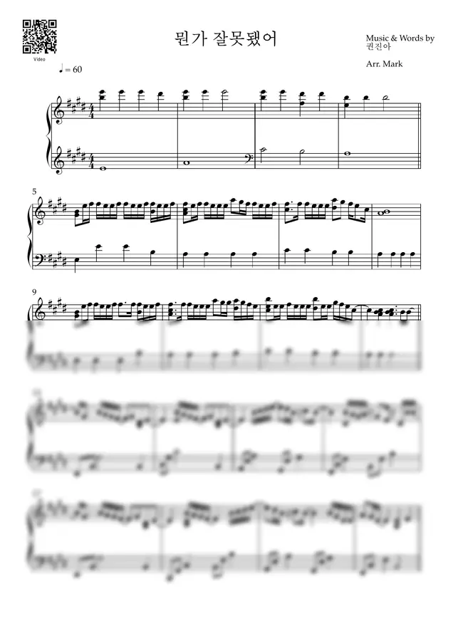 원곡의 감정선을 살려 연주 부담은 크지 않게 편곡했습니다.