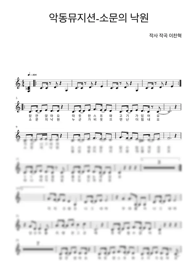 소문의 낙원 보컬1단+피아노2단 악보
