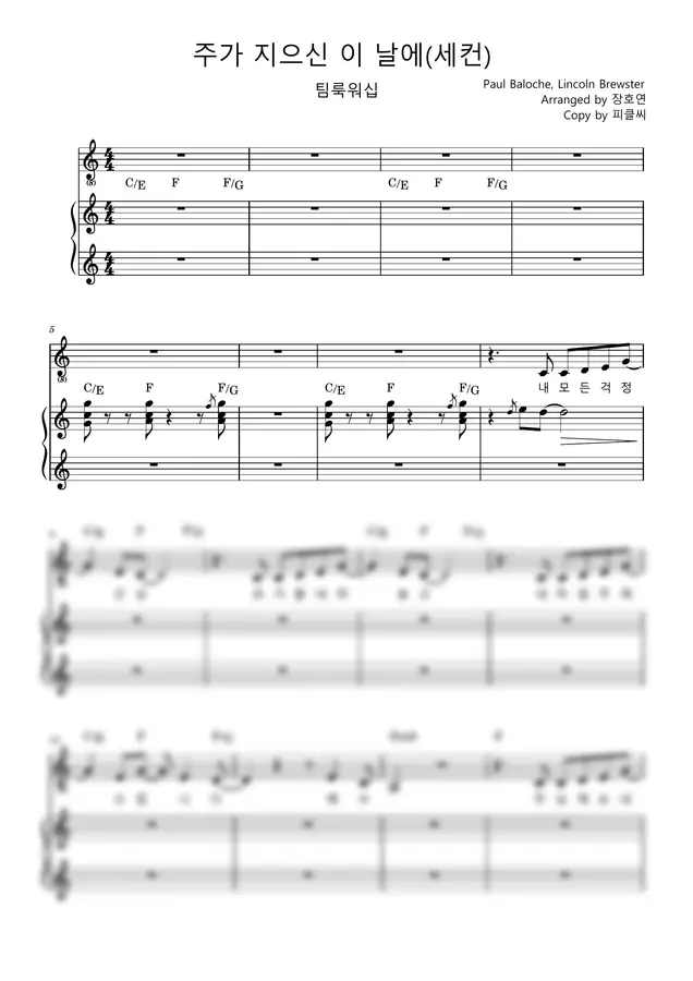 팀룩워십 - 주가 지으신 이 날에 (세컨) C Key by 피클씨