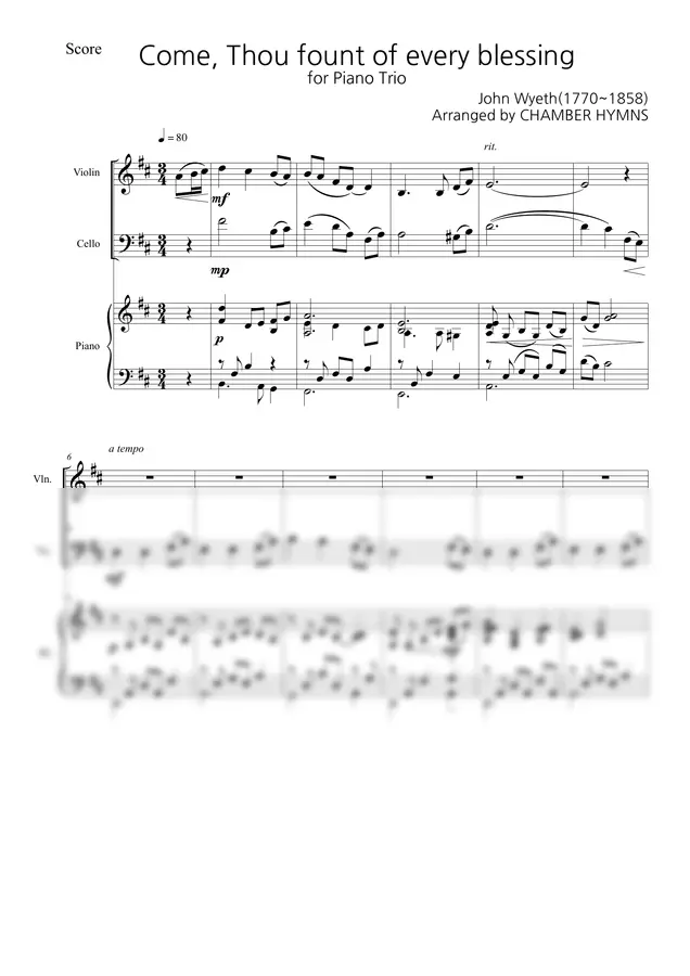 John Wyeth - 복의 근원 강림하사 (피아노 트리오 악보) by CHAMBER HYMNS 2p 미리보기