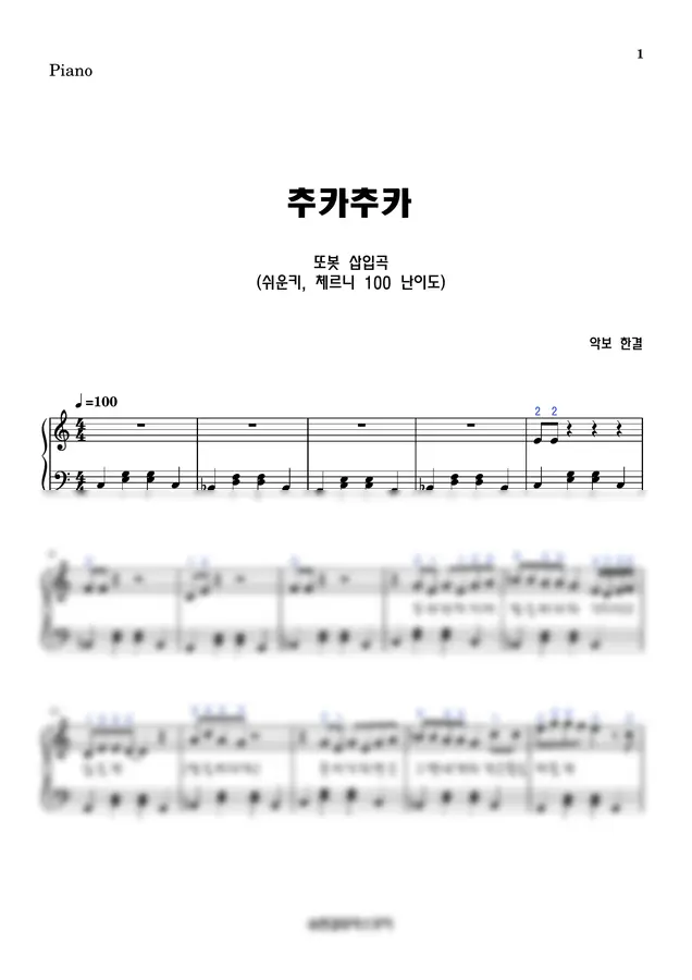 또봇 삽입곡 - 추카추카 (원키, 체르니30 난이도)