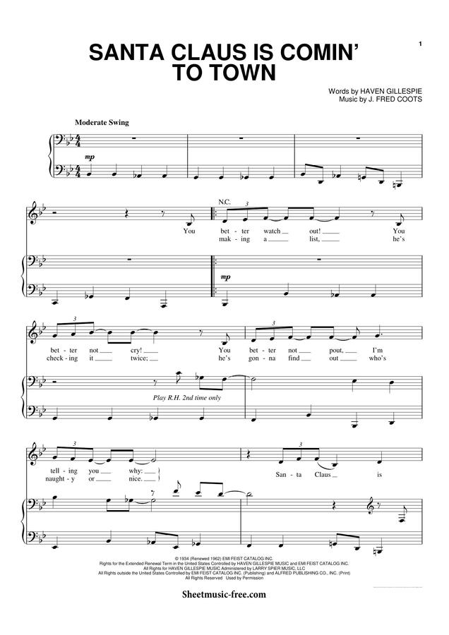 울면 안돼 (Santa Claus is Coming to Town) (피아노 3단)