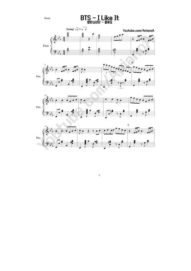 ApianoA 악보7 // BTS(방탄소년단) - I Like It(좋아요) 입니다.