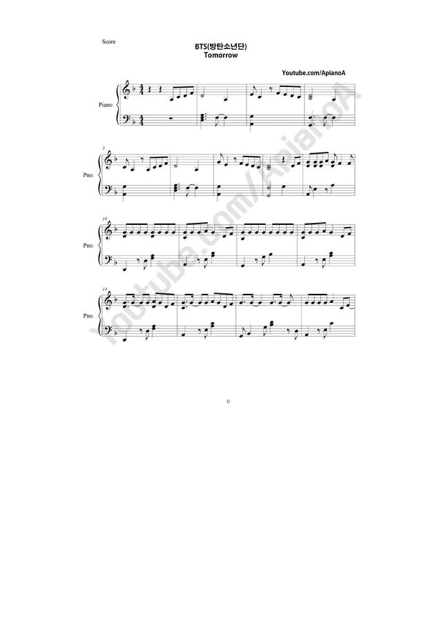ApianoA 악보12 // BTS(방탄소년단) - Tomorrow 입니다.