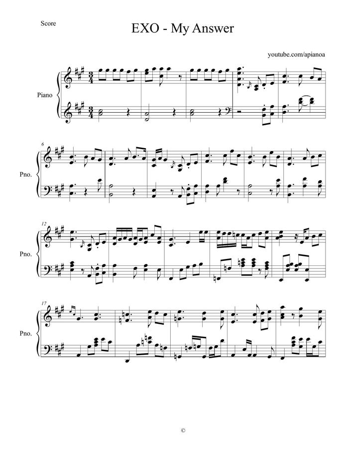ApianoA 악보29 // EXO(엑소) - My Answer 입니다.